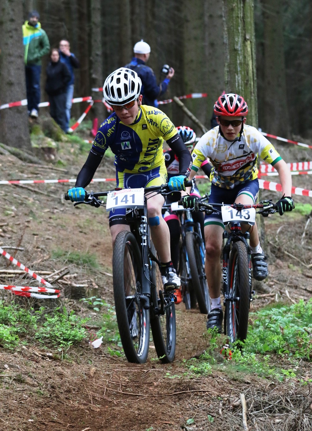 Gleichzeitig nahmen vier Fahrer der Eliteklasse beim 4. Lauf der Mountainbike-Bayernliga in Wütenselbitz teil. Auf der anspruchsvollen Strecke, geprägt von unzähligen Wurzeln konnte dabei Sandy Trautmann den Sieg in der Damenklasse einfahren.