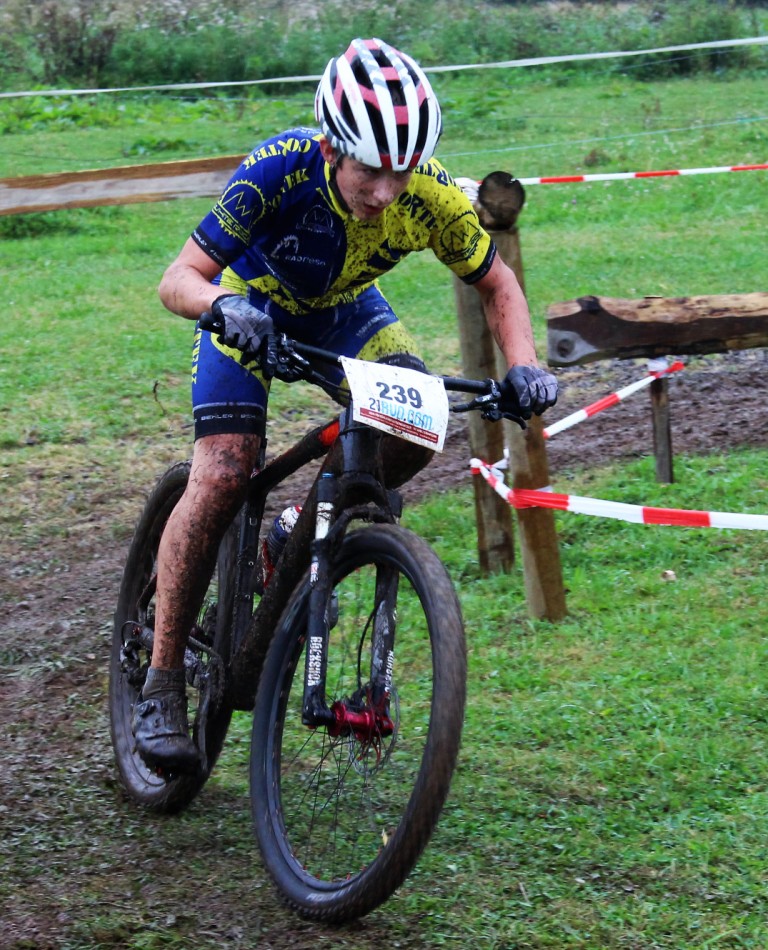 Der Sonntag stand ganz im Zeichen der Cross – Country- Wettbewerbe. Mit Beginn des ersten Rennens der U15 männlich öffneten sich die himmlischen Schleusen und es begann heftig zu regnen. Dadruch wurde die Strecke immer schwerer befahrbar und der Boden immer tiefer.
