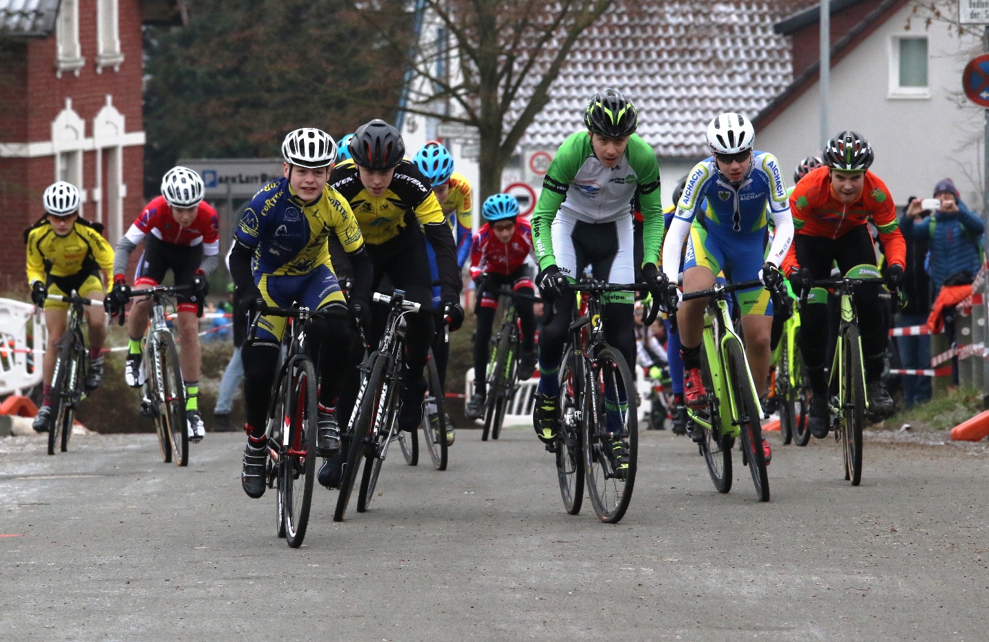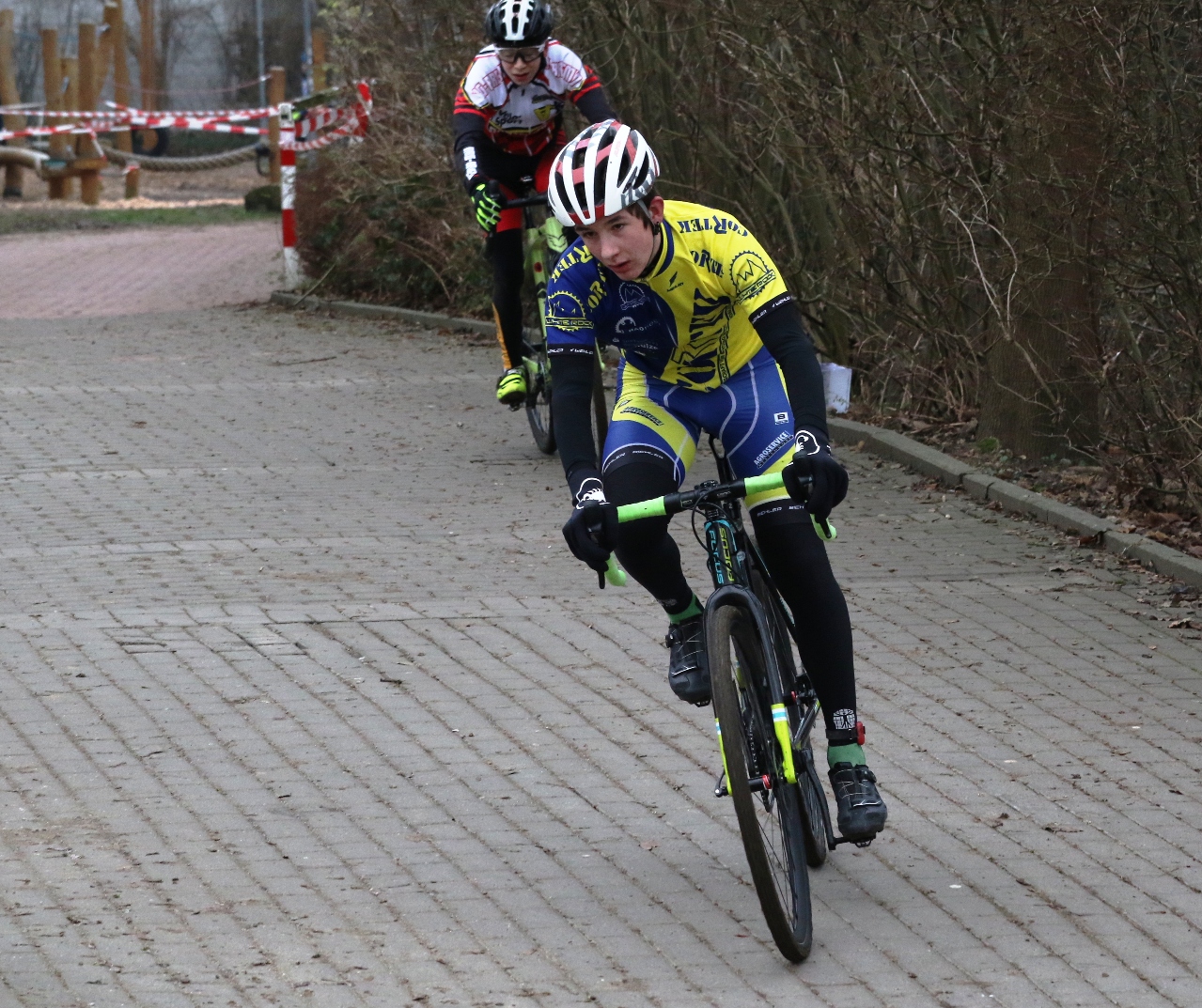 Johan Bundschuh und Nick Planert schoben ihre Crossräder beim U17- Rennen an den Start. Aufgrund fehlender Resultate im Deutschlandcup im Vorfeld mussten beide aus der letzten Startreihe das Rennen aufnehmen, konnten sich aber recht schnell bis ins Mittelfeld vorarbeiten. Fortan fuhr insbesondere Johan ein gutes Rennen, was ihm letztlich einen 16. Platz einbrachte. Nick hingegen musste am Ende seiner defensiven Fahrweise geschuldet noch etwas Federn lassen, bei ihm stellt Rang 23 sicher nicht sein eigentliches Leistungsvermögen wider.