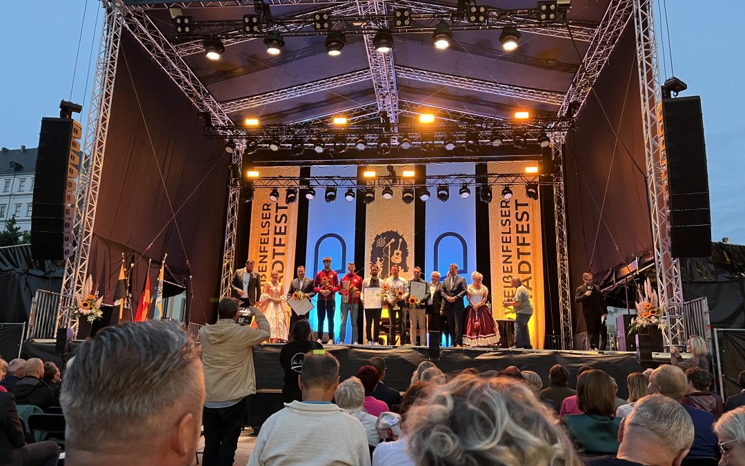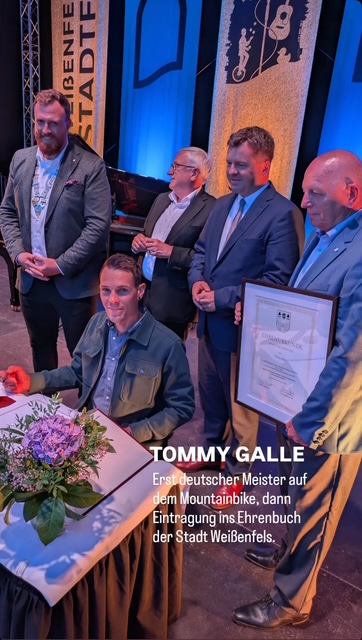 Eine besondere Ehre wurde unserem frisch gebackenen Deutschen MTB-Meister Tommy Galle zuteil: Beim Weißenfelser Schtadtfest konnte er sich auf der Bühne vor großem Publikum ins Ehrenbuch der Stadt Weißenfels eintragen- zu Recht !