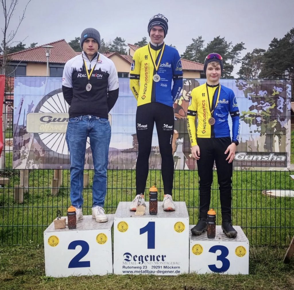 Pünktlich fiel für das nächste Cyclocross Rennen der Startpfiff. Die U15 ist im 14- köpfigen Feld gestartet, mittendrin Julia Schmidt und Luis Hiekmann. Beide haben ihre 20 min Fahrzeit bei Minus Graden mit Bravour absolviert. Julia konnte sich den 1. Platz der Mädchen erfahren und wurde somit Landesbeste. Luis ist als 7ter über die Ziellinie gefahren und damit Vizelandesmeister in der U15 geworden.