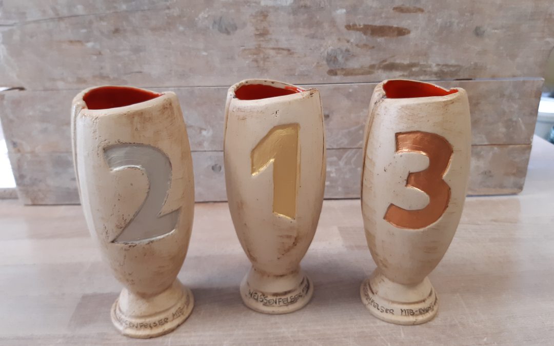 Bei der Vorbereitung unseres MTB-Events geht es so langsam in die Details: Heute konnten wir die Pokale in Augenschein nehmen. Jedes Stück ein handangefertigtes Unikat von unserem Kooperationspartner aus der Keramikabteilung den Integra- Behindertenwerkstätten.